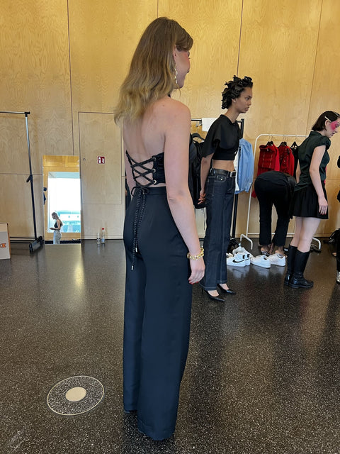Für die Models wurde ein großer Backstage-Raum für das Fitting eingerichtet. Jedes Dressgirl bekam seinen eigenen Platz und wurde nach den von Arbresha kreierten Looks (Makeup und Haare inspiriert von den 1920er Jahren) von den Makeup-Artists der Beauty Academy für die Shows vorbereitet. Danke an Shamanic für die Makeup-Produkte! Natürlich kümmerten wir uns von morgens bis abends um das leibliche Wohl der Models und alle anderen Mitwirkenden des ersten LIAISON.LIFE-Events mit Brezeln, Kaffee, Obst, Süssis und natürlich sehr viel Sekt .